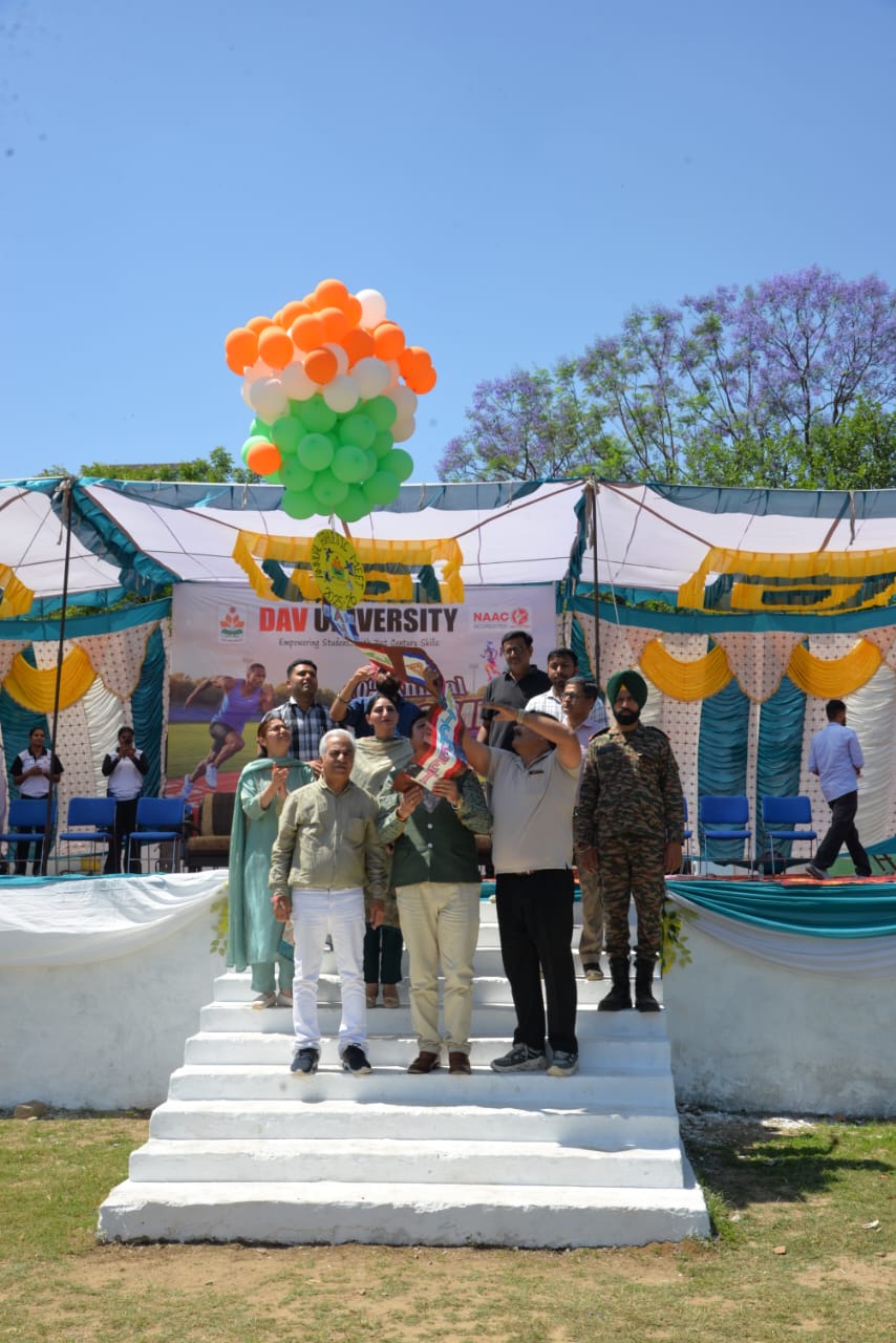 जालंधर (अरोड़ा) :- डी.ए.वी. यूनिवर्सिटी, जालंधर में दो दिवसीय 10वीं वार्षिक एथलेटिक मीट की शुरुआत बड़े जोश और उत्साह के साथ हुई। इस अवसर पर विभिन्न विभागों के विद्यार्थियों ने ट्रैक और फील्ड की कई प्रतियोगिताओं में भाग लिया। इस मीट का उद्घाटन प्रो. (डॉ.) मनोज कुमार, वाइस चांसलर, डी.ए.वी. यूनिवर्सिटी द्वारा किया गया। इस मौके पर प्रो. (डॉ.) एस. के. अरोड़ा, रजिस्ट्रार भी उपस्थित रहे। उद्घाटन समारोह में मार्च पास्ट, शपथ ग्रहण और मशाल प्रज्वलन किया गया, जो खेल भावना और एकता का प्रतीक है। मीट का उद्घाटन करते हुए वाइस चांसलर प्रो. (डॉ.) मनोज कुमार ने कहा, “खेल विद्यार्थियों के चरित्र, अनुशासन और नेतृत्व क्षमता को विकसित करने में महत्वपूर्ण भूमिका निभाते हैं। यह एथलेटिक मीट केवल प्रतियोगिता नहीं, बल्कि हिम्मत और टीम भावना को बढ़ाने का मंच है।