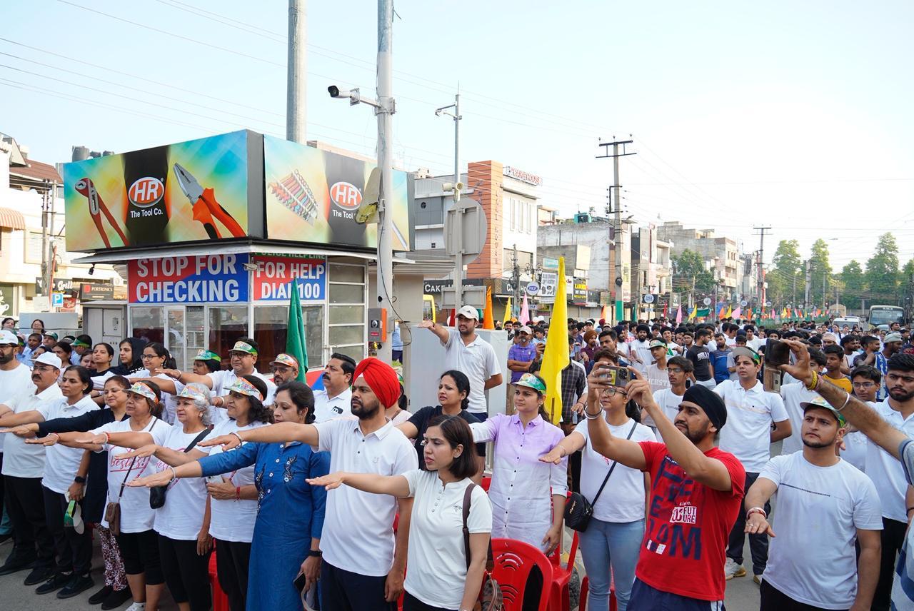 उन्होंने कहा कि सामाजिक कल्याण डी.ए.वी. शिक्षा-दर्शन का मूल आधार है तथा यह वॉकथॉन नशीली दवाओं के दुरुपयोग के विरुद्ध एक व्यापक जनांदोलन का प्रारंभ करने की क्षमता रखता है। उप-मंडल मजिस्ट्रेट नवदीप सिंह ने इस वॉकथॉन को नशीली दवाओं के दुरुपयोग के विरुद्ध संघर्ष में एक अत्यंत सार्थक पहल बताया। युवाओं को संबोधित करते हुए उन्होंने कहा कि राष्ट्र के भविष्य के रूप में विद्यार्थियों की भूमिका अत्यंत महत्वपूर्ण है और नशे जैसी सामाजिक बुराइयों के विरुद्ध उनकी भागीदारी अनिवार्य है। उन्होंने कहा कि यह वॉकथॉन भले ही एक छोटा कदम प्रतीत हो, परंतु इसका प्रभाव दूरगामी होगा। उन्होंने विद्यार्थियों से आग्रह किया कि वे केवल दर्शक न बनें, बल्कि समस्याओं के समाधानकर्ता बनें और नशामुक्त समाज निर्माण की व्यक्तिगत ज़िम्मेदारी निभाएं। उन्होंने कहा— “परिवर्तन आप में से प्रत्येक से प्रारंभ होता है।” उन्होंने युवाओं से पंजाब को नशे के कलंक से मुक्त करने तथा ‘रंगला पंजाब’ के स्वप्न को साकार करने के लिए नेतृत्व करने का आह्वान किया। इसके पश्चात सभी प्रतिभागियों ने नशीली दवाओं के दुरुपयोग के विरुद्ध सामूहिक शपथ ली तथा नशामुक्त जीवन जीने और उसे बढ़ावा देने का संकल्प किया। समारोह में रवि दारा द्वारा सांस्कृतिक प्रस्तुति, श्री दलविंदर दयालपुरी द्वारा संगीतमय प्रस्तुति, डी.ए.वी. बैंड की प्रस्तुति तथा इसके बाद जोशीले भांगड़े की प्रस्तुति शामिल थी। कार्यक्रम का संचालन प्रो. शरद मनोचा द्वारा किया गया।