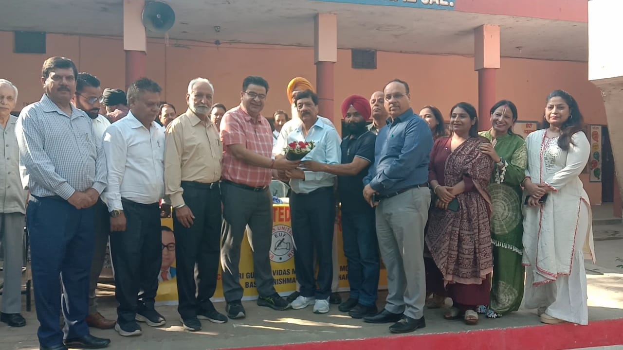 जालंधर/अरोड़ा – इम्प्लाईज युनाइटेड फोरम बस्ती दनिश्मन्दा द्वारा भारत रत्न बाबा साहिब डॉ भीम राव अंबेडकर की 135वीं जयंती के उपलक्ष्य में पीएम श्री गवर्नमेंट सीनियर सेकेंडरी स्मार्ट स्कूल गाखल धालीवाल में एक आयोजन किया गयाl इस अवसर पर सर्वप्रथम फोरम के सदस्यों और स्कूल के अध्यापिकों द्वारा बाबा साहिब डॉ अंबेडकर के चित्र पर पुष्प अर्पण कर श्रद्धांजलि दी गईl प्रिंसिपल ललित मोहन गुप्ता ने अपने टीचरों सहित फोरम के चेयरमैन डॉ आर एल बस्सन और प्रधान मदन लाल सहित सभी सदस्यों का बुके देकर स्वागत कियाl मैडम सतबीर कौर ने फोरम की गतिविधियों कीविस्तारपूर्वक जानकारी दी l